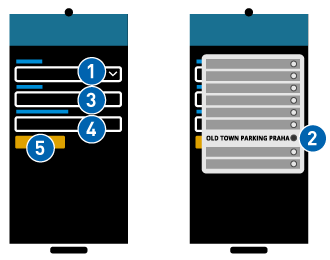Klikněte/tapněte na první položku formuláře pro výběr obchodníka parkingu